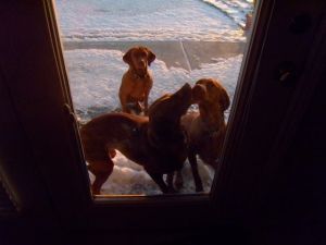We got Abby when she was rescued from an abusive situation of repeated litters, having her last litter at age 11. Her past owner had died, and she found her way to an owner who tried to turn out many litters. We found out through DNA testing she the dam of a friend of the family “Taz” CH Rebel Rouser Tascosa Gunslinger, SH at Tascosa Vizslas . You can read more about her rescue here. Abby is an example of why puppy buyers should be careful where they get their puppies. No dog should be producing 6 or more litters and certainly not at 11! This is why a good breeder will be tough on buyers, carefully screening them. And, breeders will usually have a lifetime return policy of first refusal, meaning that if for any reason you don’t want or can’t keep the dog, it will go back to the breeder. Some dog owners, will go so far as to have a dog clause in their will in case something should happen to them.
