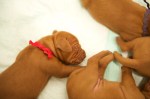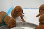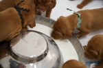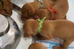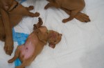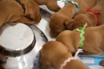 6 JanSadie and Havocs puppies have opened their eyes and are getting their first try of goat’s milk in a tray. Watching them trying to lap is absolutely adorable. I think more gets on their noses than actually inside them. This is day 19 and 20.